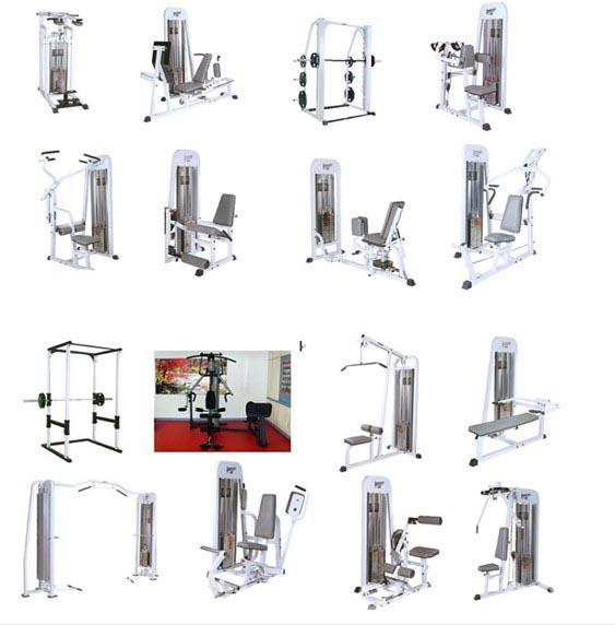 分为综合力量、自由力量和单功能力量几种。如杠哑铃、腹肌板、综合训练器、推胸器、二头肌训练器、蹬腿机、划船机、卧推架、背部练习器、腹部练习器、大飞鸟等力量训练器材。