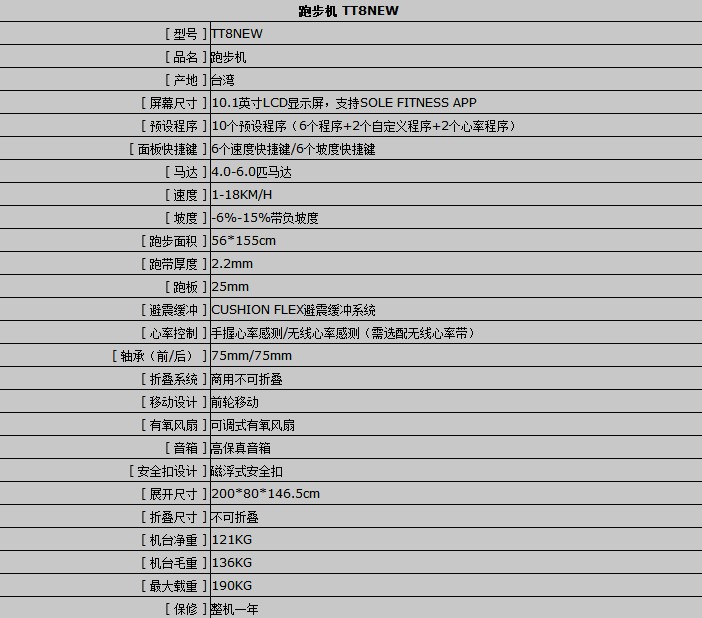 美国SOLE速尔 TT8NEW商用跑步机