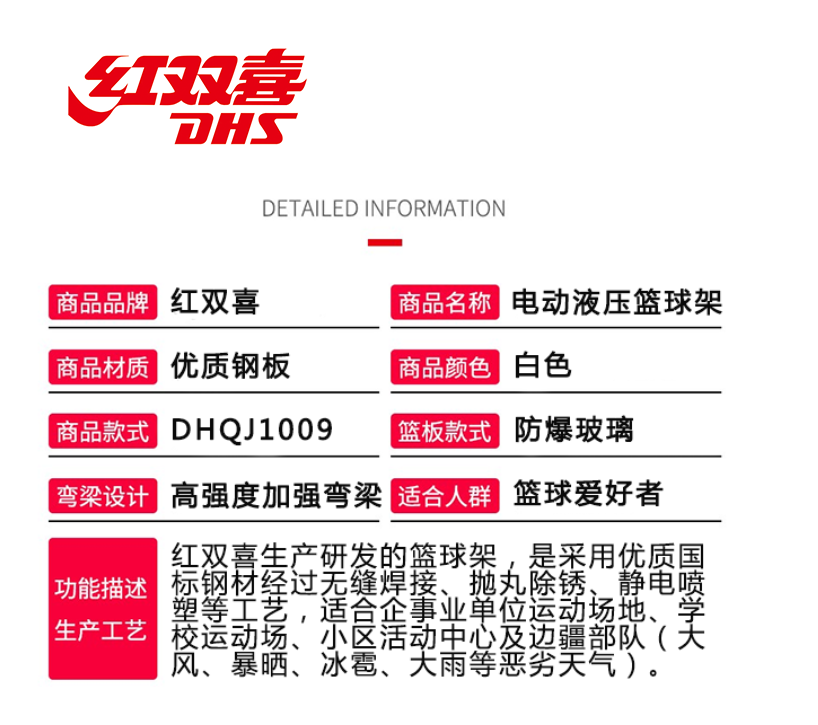 - 下一个产品:红双喜DHQJ1008 电动液压篮球架